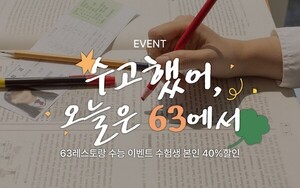 63레스토랑이 대학수학능력시험을 마친 수험생을 응원하기 위한 특별 할인 프로모션을 진행한다고 3일 밝혔다. 63스퀘어 고층부에 위치한 워킹온더클라우드, 슈치쿠, 백리향은 오는 30일까지 ‘수고했어 오늘은 63에서’ 프로모션을 마련하고, 브랜드별 인기 코스 요리를 40% 할인된 가격에 선보인다.또한 오랜 시간 노력한 수험생의 합격과 행운을 기원하는 마음을 담아 ‘블랑제리 더 플라자 한남’ 수석 파티시에가 만든 네잎클로버 아몬드 버터 쿠키도 증정한다. 63뷔페 파빌리온 용산은 오는 28일까지 ‘수능의 빛나는 순간 파빌리온에서’ 프로모션