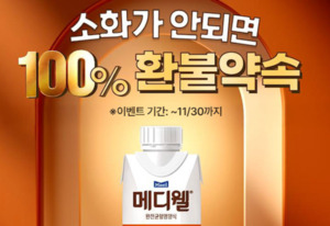 매일유업의 균형영양식(환자식) 전문 브랜드 메디웰이 신제품 ‘구수한 누룽지맛’ 출시를 기념해 ‘소화가 안되면 100% 환불약속’ 프로모션을 실시한다고 17일 밝혔다.이번 행사는 ‘메디웰 구수한 누룽지맛’ 제품의 편안한 소화•흡수에 대한 강점을 알리기 위해 준비한 행사로 신제품 구매 후 소화가 불편하거나 불만족할 경우 배송비 부담없이 전액 환불이 가능하다.온라인으로 매일유업 네이버 직영스토어에서 메디웰 구수한 누룽지맛 200㎖ 1박스(18개) 구매 시 체험용 제품 3개를 추가로 받아 먼저 먹어보고 소화가 불편하다면 7일 이내 반품 신